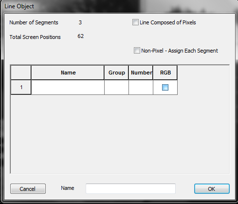 - Click in the Name field to select the pixels for the line.